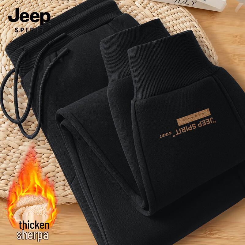 JEEP SPIRIT Men's Thickened Lamb Wool Fleece Sweatpants