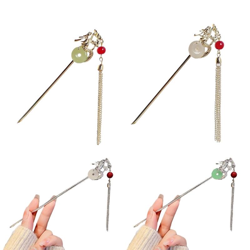Élégant Bâton à Cheveux à Franges Chinois Hanfu Balanciers Épingle à Cheveux Barrettes Baguettes Antidérapantes Épingle à Cheveux Dragon pour Coiffure