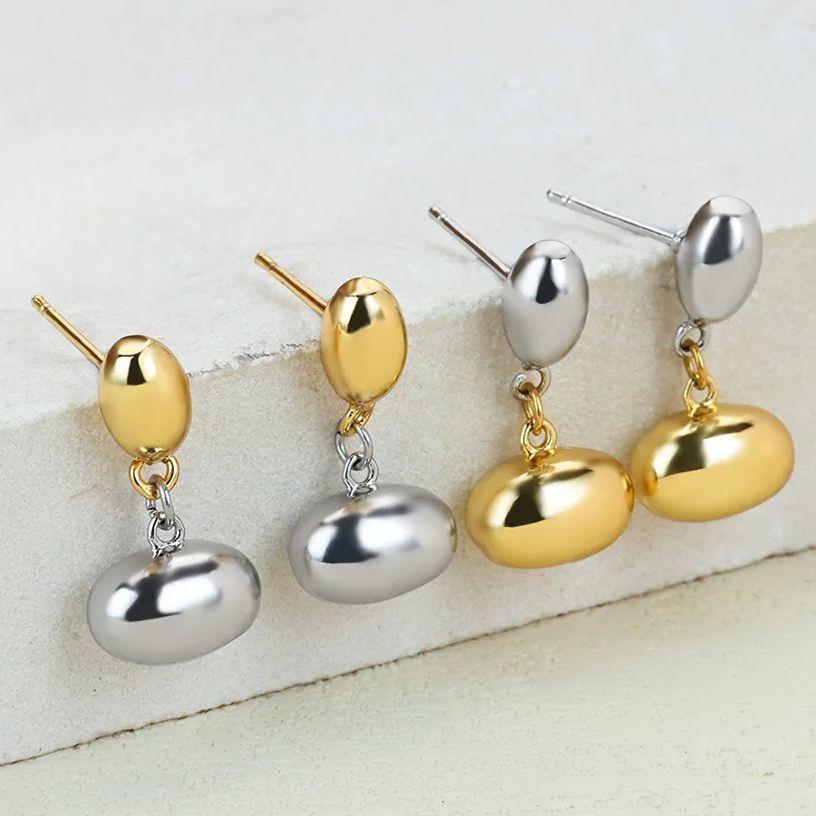 Luxury Double Spliced Oval Stud Earrings For Women Stainless Steel Drop Earring Fashion Aesthetic Christmas Jewelry Gift