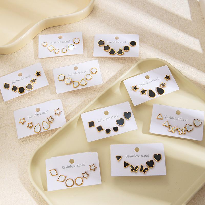 Stainless Steel White Black Shell Heart Star Flower Earrings For Women Simple Temperament Jewelry Gifts Wholesale