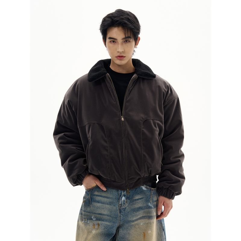 Kisko Winter American-Style Bomber Silhouette Fur Collar Suede Cotton Jacket for Men and Women, Cool and High-End, Warm and Trendy Coat