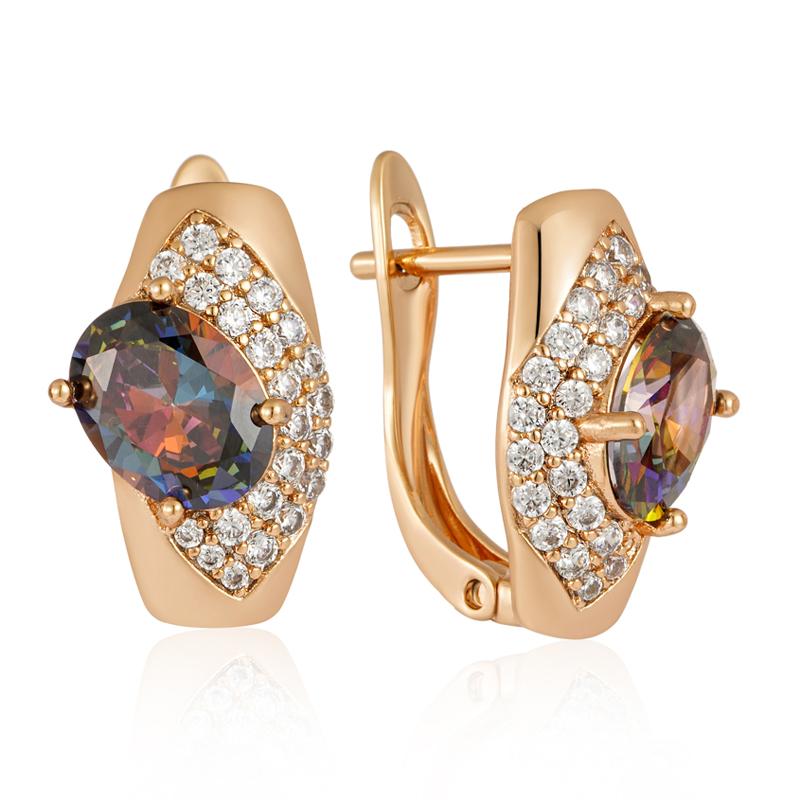 New Rose Gold Color Drop Earrings For Women Delicate Oval Cut Colorful Natural Zircon Accessories Daily Fine Jewelry