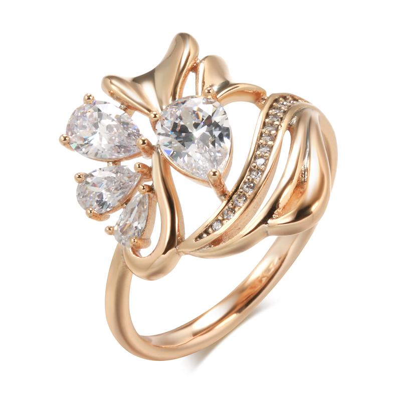 New Hyperbole Ethnic Bride Rings Rose Gold White Natural Zircon Party Fashion Wedding Jewelry Crystal Flower Big Ring