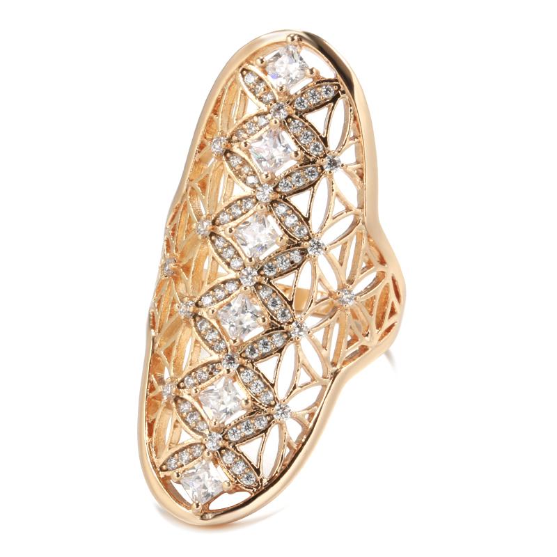 Unique Rose Gold Big Ring For Women Fashion Natural Zircon Engagement Wedding Party Daily Fine Jewelry New