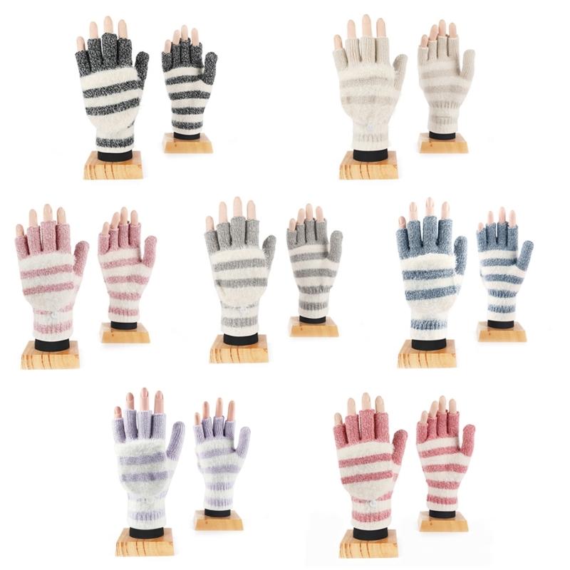 Soft Warm Gloves Winter Knitted Gloves Soft Cartoon Striped Fingerless Gloves with Flip Top Warm Glove Stretchy Mitten