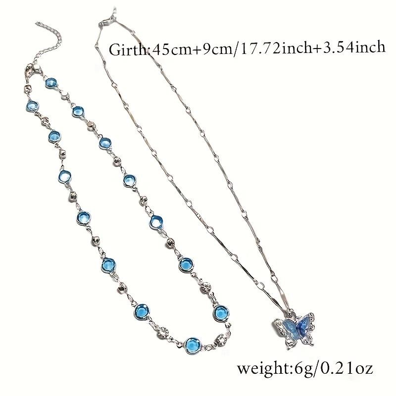 2Pcs Butterfly Pendant Necklace Set Dual Layer Choker Necklace Valentine'S Day All Seasons Daily Special Occasions Gift For Her