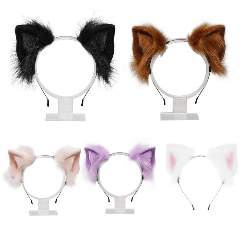 Lolita Headbands Furry Animal for Cat Ears Headwear Kawaii Hair Hoop for Halloween Cosplay Headpiece Party Supplies