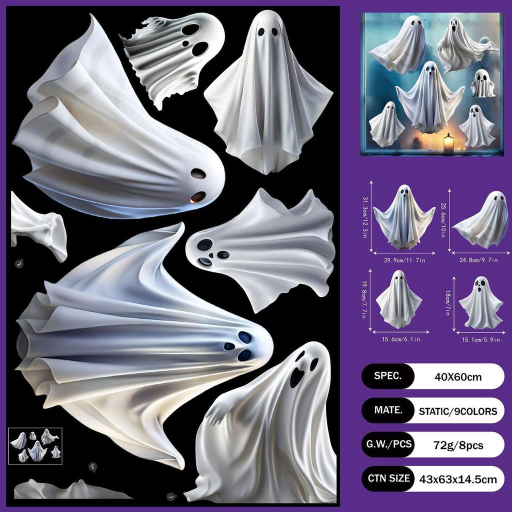 Autocollants de Fenêtre Halloween Décor Fantôme Blanc Adhésifs de Fenêtre Stickers Muraux en PVC Décoration Squelettique Pour Fête de Fête
