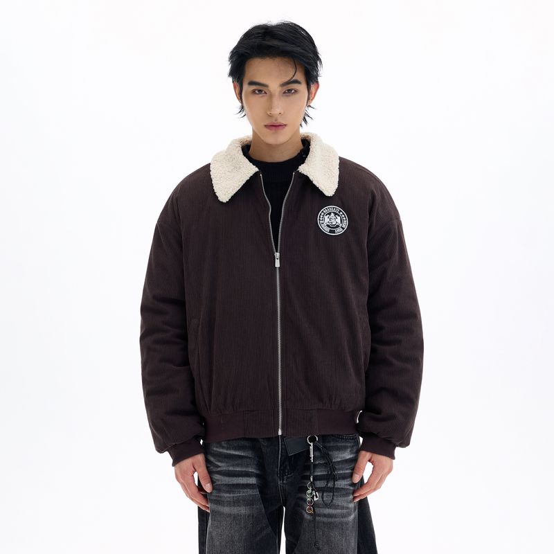 Kisko Winter American-Style Corduroy Warm Fur Collar Brown Cotton Jacket for Men and Women, High-End Loose Padded Coat Trendy