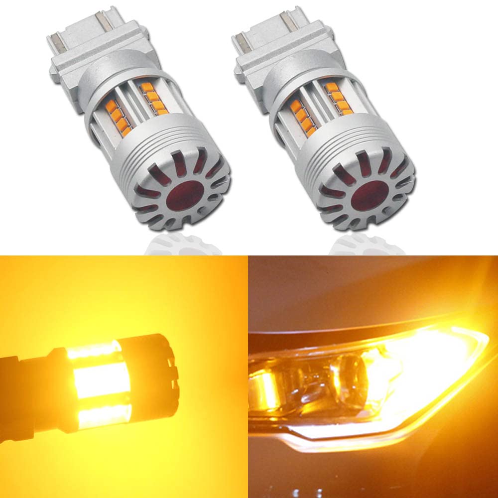 Eseastar T25 3157 P27/7W LED Turn Signal Bulb, Amber, Cooling Fan, Built-In CANBUS Canceller,