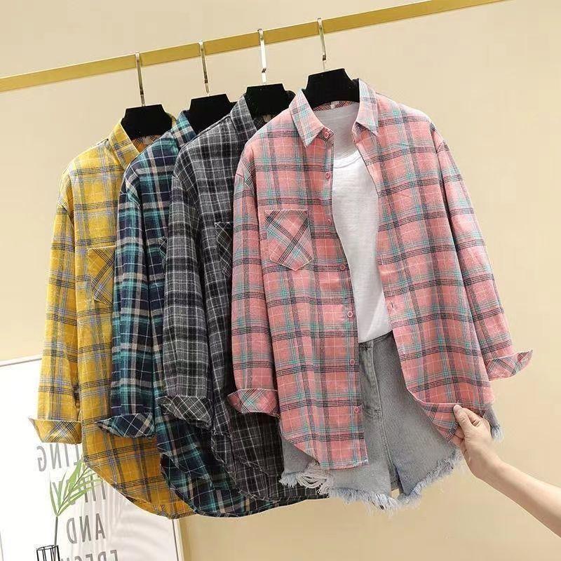Plaid Shirt Women's Spring and Autumn Korean Version Loose Long-sleeved Brushed Retro Student Shirt Loose Jacket