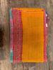 This quilt is made from genuine vintage sarees that have been pre-used and repurposed. As such, you may notice: Faded colors or slight discoloration, visible fabric patches and hand-repairs, minor stains, thread pulls, or worn areas, irregular stitching – part of the hand-crafted charm