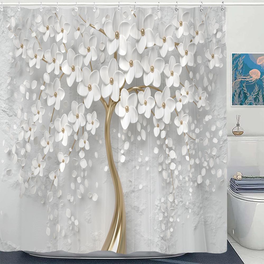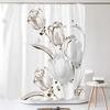 Rideau de douche Blanc Fleurs Modernes Minimaliste Nordique Imprimé Art Floral Polyester Décoration Intérieure Rideau de Salle de Bain avec Crochets