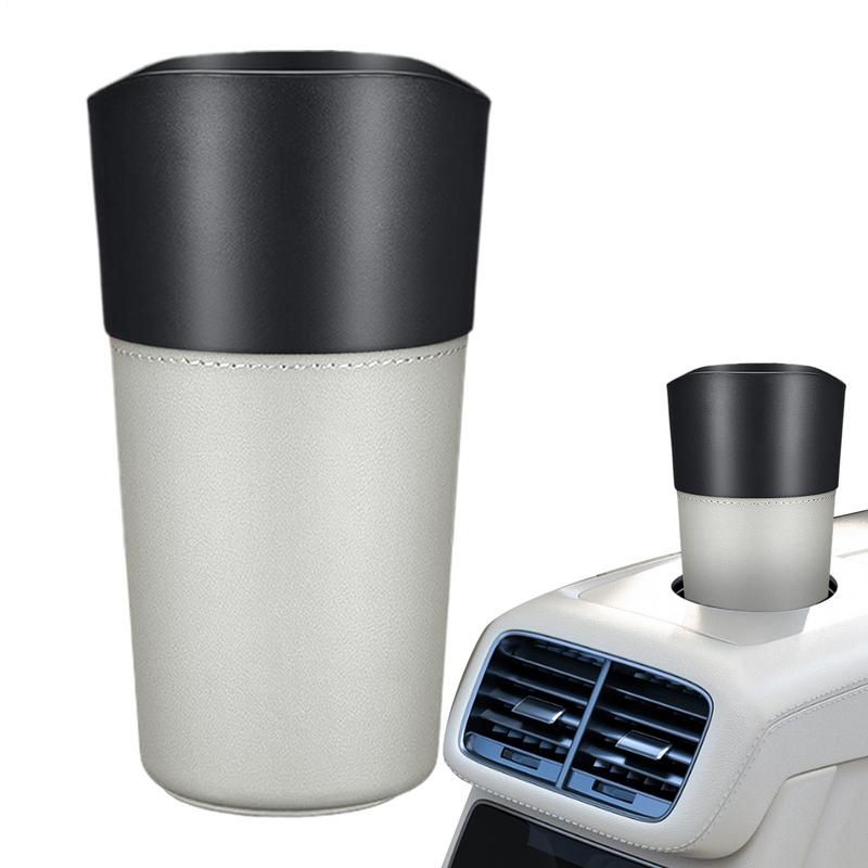 Poubelle Porte-gobelet pour Voiture Petite Poubelle Étanche Poubelle Poubelle en Cuir Contenant Polyvalent Intérieur de Voiture