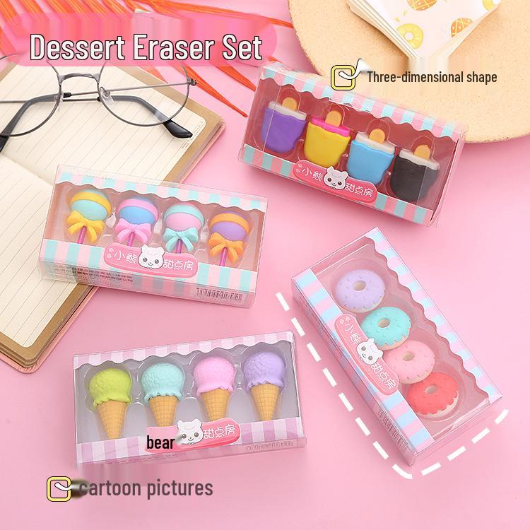 Transformez vos sessions d'étude en une expérience ludique avec ces charmantes gommes. Ressemblant à de délicieux desserts tout droit sortis d'un dessin animé, ils ajoutent une touche de fantaisie à n'importe quel espace de bureau.. Parfaits comme cadeaux attentionnés pour les étudiants ou comme ajouts amusants à la papeterie, ces gommes combinent fonctionnalité et esthétique mignonne.. Chaque pièce est soigneusement conçue pour imiter une confiserie, faisant disparaître les erreurs avec un sourire.. Idéal pour encourager la créativité et rendre l'apprentissage plus agréable.