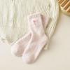 Women's Pink Mid-Tube Socks: Warm Embroidered Bow, Thick Velvet, Autumn/Winter Collection