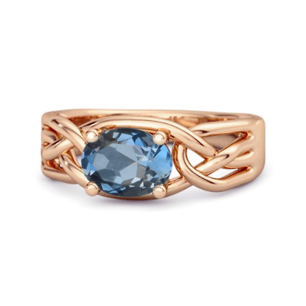 London Blue Topaz Celtic Woven Band Ring - 925 Sterling Silver Rose Gold Vermeil