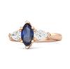London Blue Topaz Trio Stone Tapered Ring - 925 Sterling Silver Rose Gold Vermeil