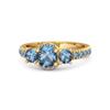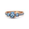 London Blue Topaz Three- 925Stone Halo Pave Band Ring - 925 Sterling Silver