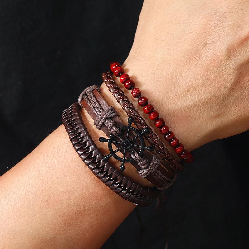 Handmade Leather Bracelet 4-piece Set Combination Bracelet Hand Rope