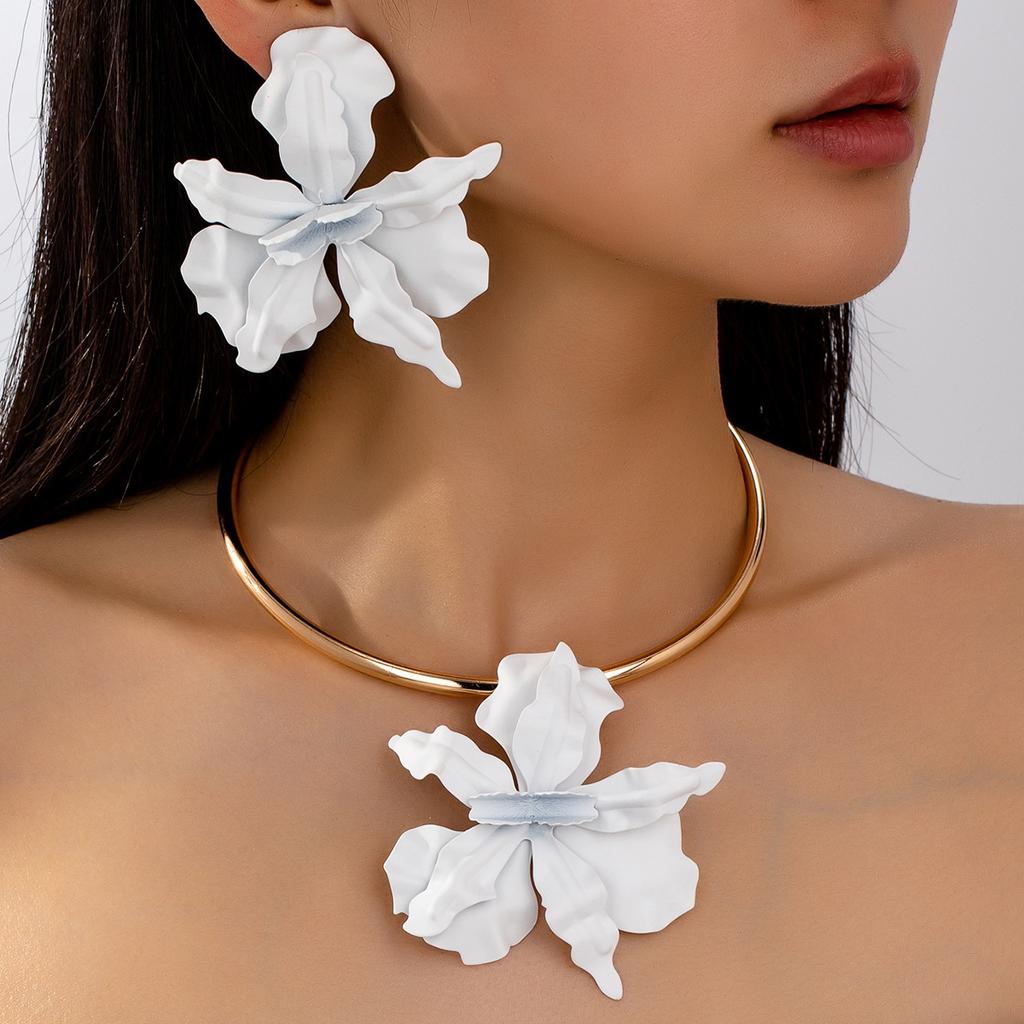 Personalized Exaggerated Flower Pendant Collar Earrings Set Women'S Fashion Street Shot Irregular Petal Jewelry