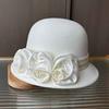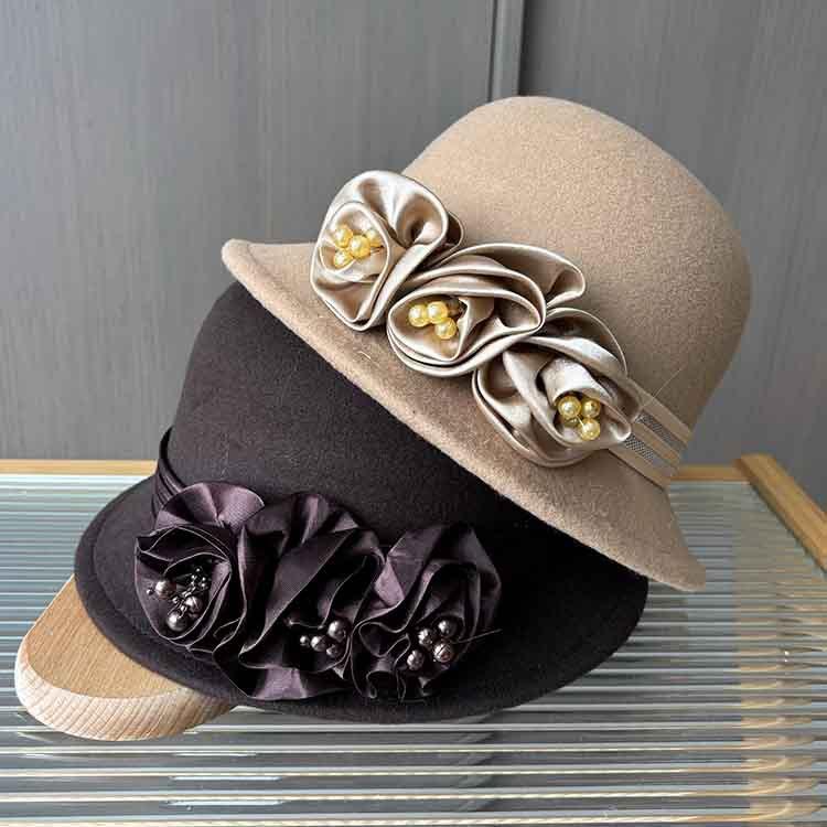 European And American Xiaoxiangfeng Satin Flower Fashion Hat, Small Edge Autumn And Winter Dome Thermal Basin Hat, Women'S Wool Woolen Top Hat