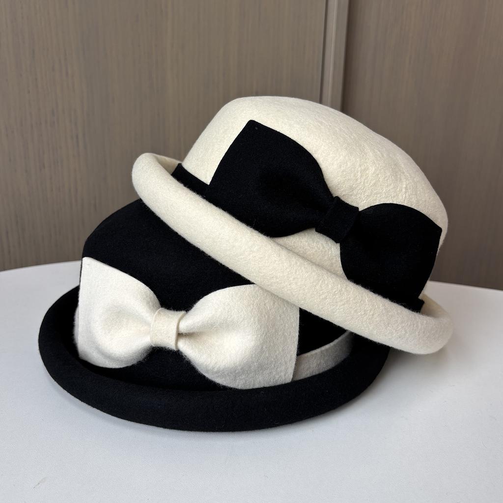 New Autumn And Winter Xiaoxiangfeng Top Hat, Elegant Bow, Curled Edge To Show The Face, Small Felt Hat, Women'S Versatile Thermal Basin Hat