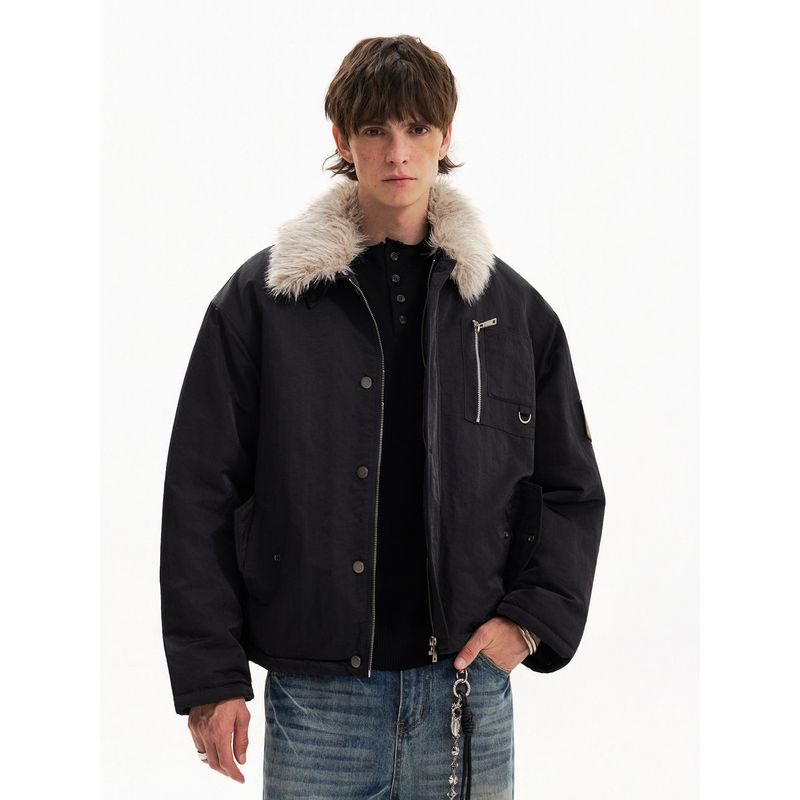 Blaexit American-Style Bomber Jacket Cotton-Padded Winter Coat Men's Thickened Fur Collar Short Parka