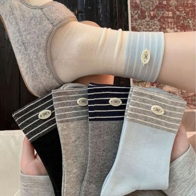 Chaussettes Mi-Mollet à Boutons et Nœud Tendance Coton Pur Polyvalentes Style Preppy Chaussettes Rayées Contrastées Empilables