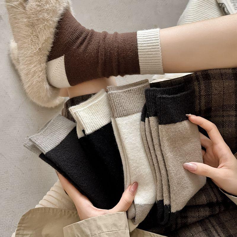 Chaussettes en laine unies polyvalentes simples chaudes Chaussettes d'hiver tendance épaisses