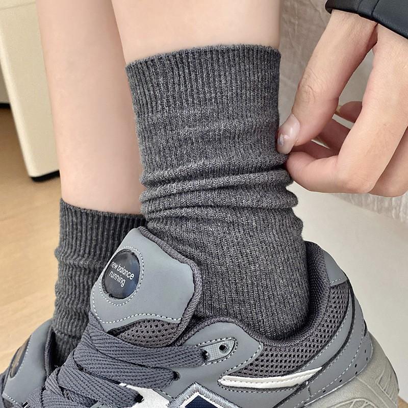 Chaussettes Coton Pur Gris Chaussettes à Empiler Saison Double Aiguille Sans Couture Couleur Unie Absorbant la Transpiration et Désodorant Coton Chaussettes Mi-Haut