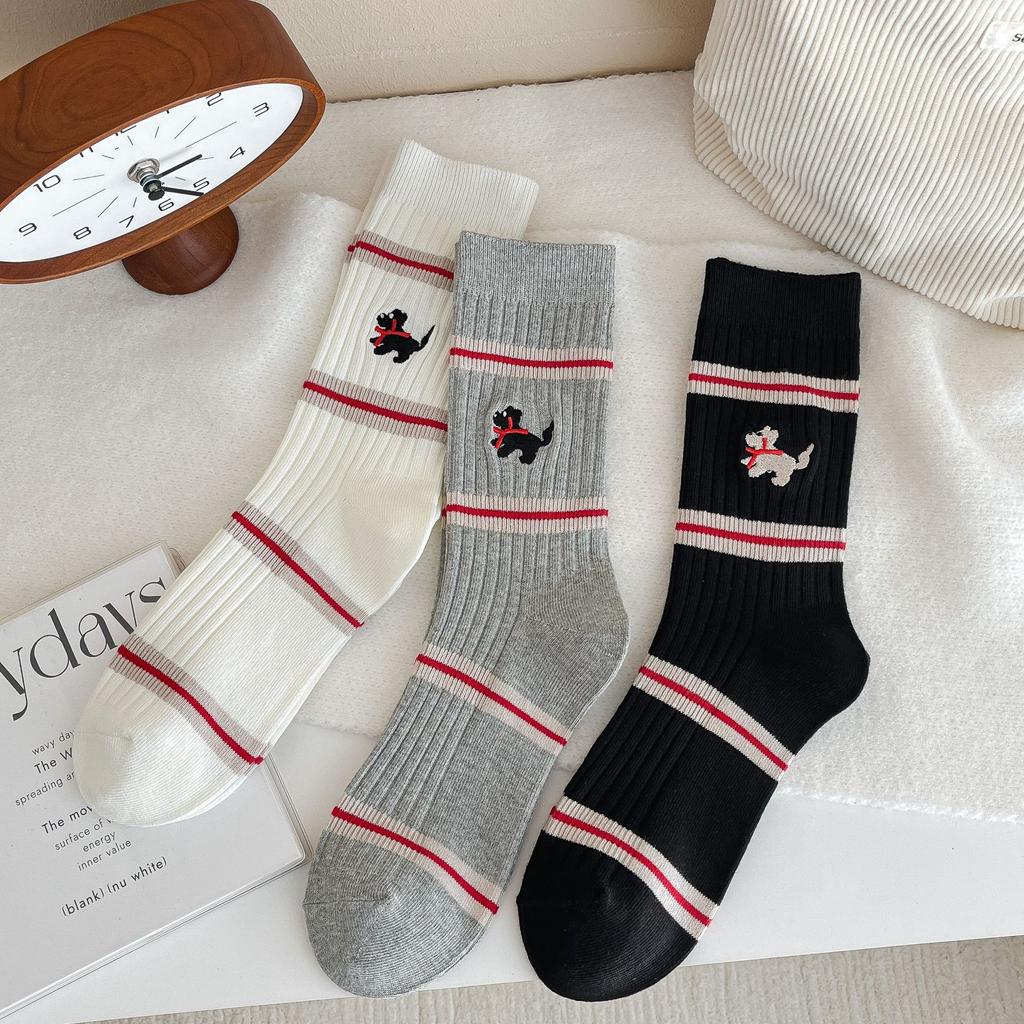 Recently, Chao Loves To Wear It! Tb College Style Pile Socks Ab Puppy English Embroidery Style Cotton Socks For Women
