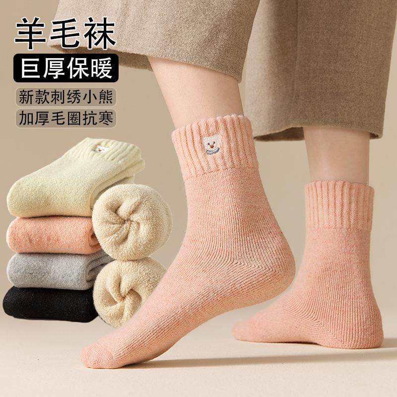 Embroidered Bear Socks Medium Tube Socks Season Warm Wool Socks Piled And Thickened Terry Cute Cartoon Stockings
