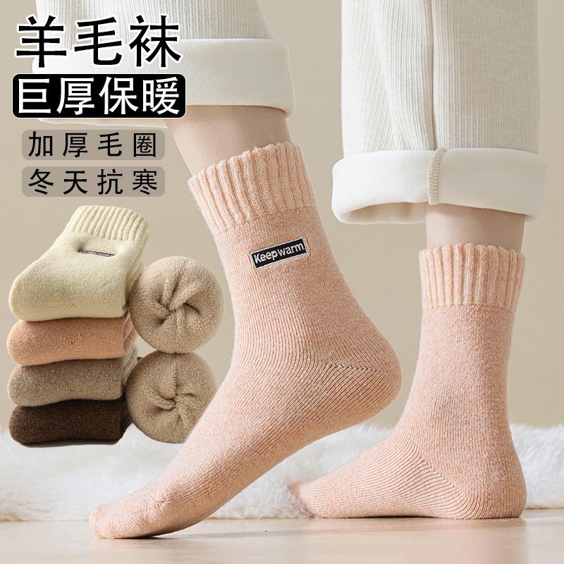 Wool Socks Children'S Medium Tube Socks Season Warm Plush Thickened Terry Socks Embroidered Letters Winter Super Thick Stockings