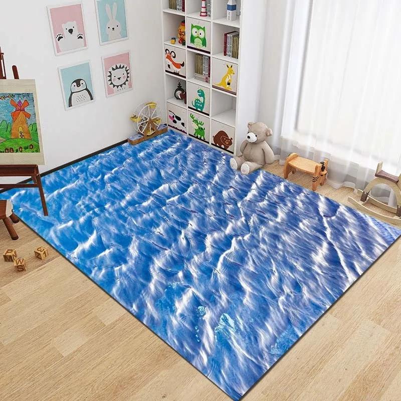 3D Sea Floor Rug Beach Waves Runner Carpet Kitchen Non-slip Living Room Carpet Marine Bath Mat Absorbent Mat Home Decoration