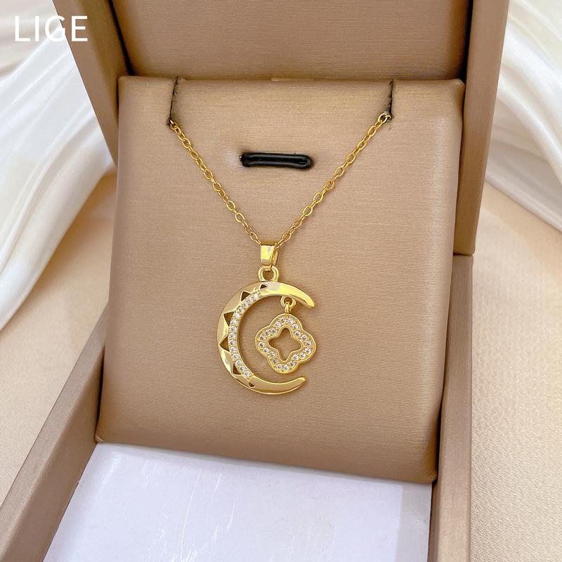 Moon Lucky Grass Full Diamond Light Luxury Temperament Gorgeous Full Diamond Necklace Female Versatile Clavicle Chain Titanium Steel