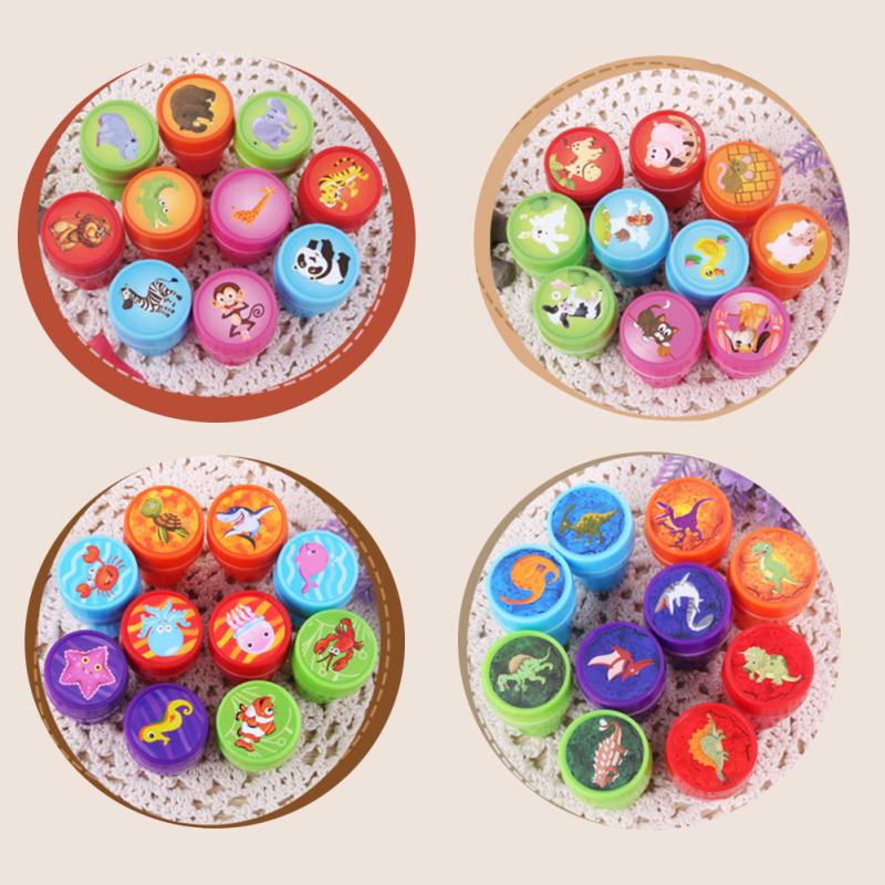 10 pièces Tampons Animaux Dinosaure Dessin Animé pour Enfants Tampons Plastique Auto-Encrants Jouets pour Enfants
