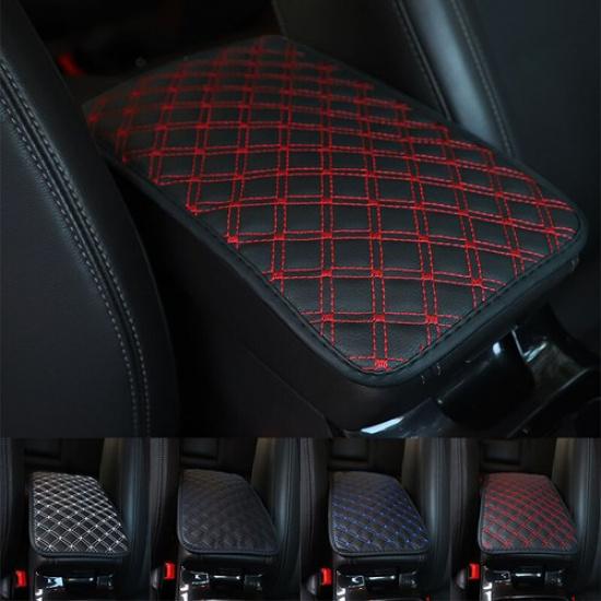 Quilted Embroidery PU Leather Car Armrest Box Cover Pad Center Console Protector