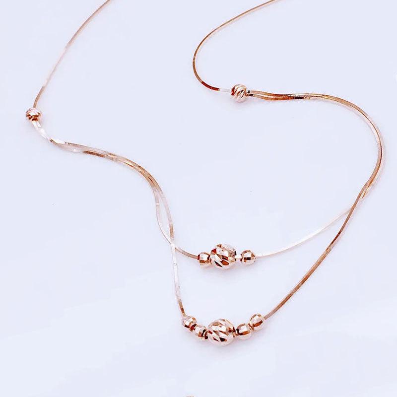 Purple Gold-Plated Rose Gold Double-Layer Transfer Bead Necklace Feminine Simple Temperament Color Gold Set Chain