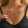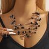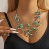Ensemble bohème rétro pour femme : collier et boucles d'oreilles à plusieurs rangs de cristaux turquoise, style bohème exagéré.