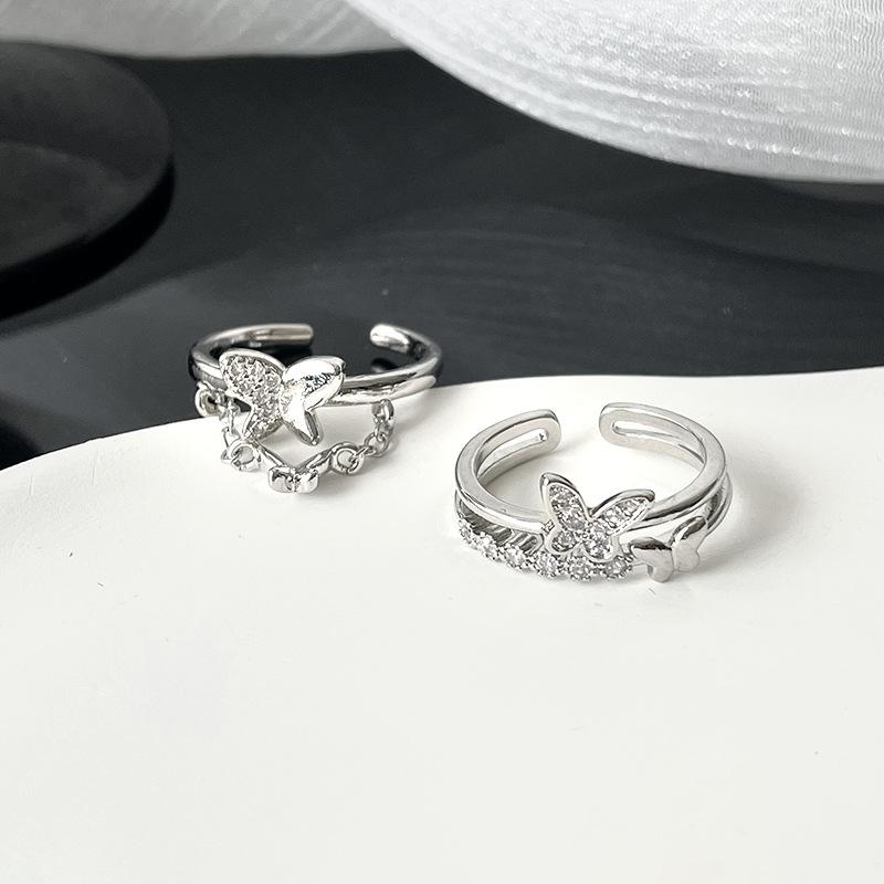 Butterfly Chain, Zircon Ring, Double-Layer Cold Wind Ring, Personalized Hip-Hop Index Finger Ring, Niche Design
