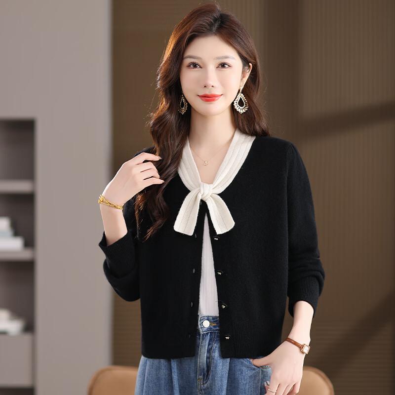 Caiyang Women's 100% Wool Bow Collar Knit Cardigan