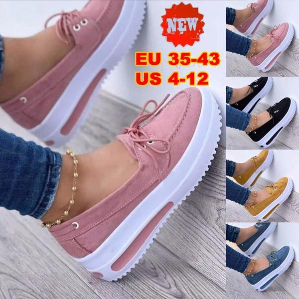 Baskets à semelles compensées pour femmes, chaussures de sport légères et confortables à lacets, couleur unie, antidérapantes, décontractées, athlétiques, grande taille 35 ~ 43