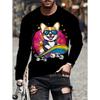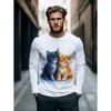 Samurai Cat T-Shirt for Men Funny Animal 3D Graphic Men's Long Sleeve Tee O-Neck Men's Clothing Japanese Anime Style Y2k Tops