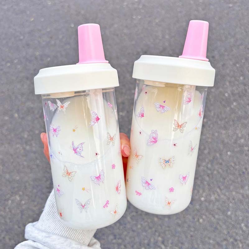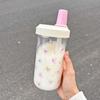 Bouteille d'eau en plastique Kawaii avec nœud de 500 ml avec paille, tasse d'eau pour thé aux bulles d'été pour femmes, étudiants, tasse à café, thé au lait aux perles, tasse à jus