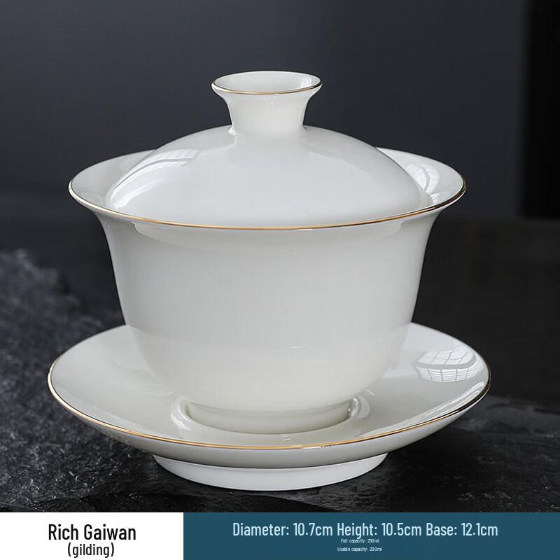 Dehua Sheep Fat Jade Gilded Ceramic Gaiwan
