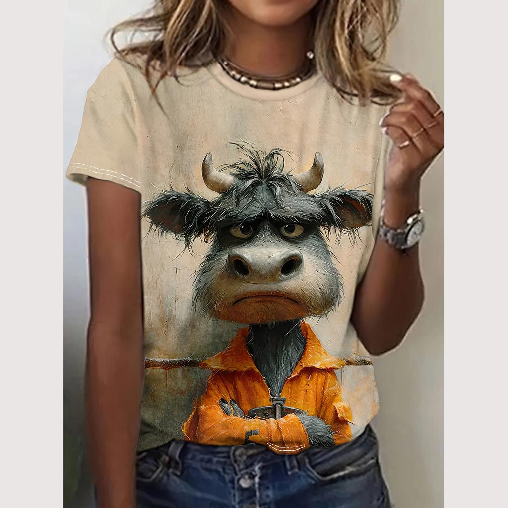 T-shirts Imprimés 3D Animaux Cartoon d'Été pour Femmes Streetwear Mode Décontracté Y2k Manches Courtes T-shirts Col Rond Hauts Vêtements