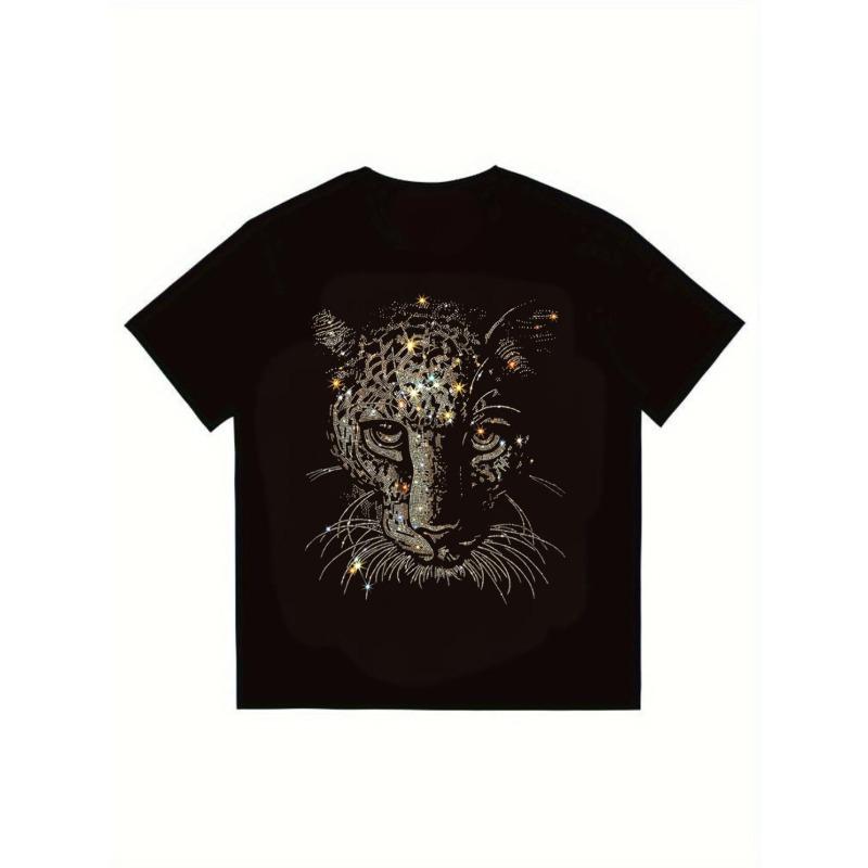 T-shirt noir avec imprimé motif étoile léopard pour tenue décontractée