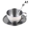 1Set Stainless Steel Coffee Mug With Spoon Saucer Placemat Heat Resistant Milk Cup Tea Mug Cup