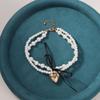 Style français doux et cool baroque double couche imitation perle nœud d'amour luxe léger design haut de gamme collier chaîne clavicule